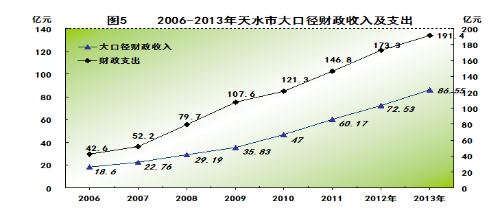 全年全市完成大口径财政收入86.55亿元,比上年增长19.33%。其中一般预算收入27.6亿元,增长19.72%;地方财政收入41.69亿元,增长18.43%。实现国家税收43.19亿元,比上年增长20.88%;地方税收21.74亿元,增长25.43%。财政支出191.4亿元,比上年增长10.05%。