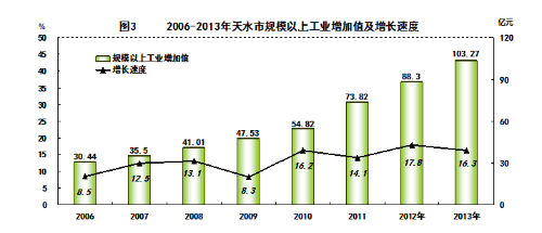 全年全市规模以上工业企业完成工业增加值103.27亿元,比上年增长16.3%。其中市属工业企业增加值49.8亿元,增长25.6%。分轻重工业看,重工业增加值57.7亿元,比上年增长19%;轻工业增加值45.55亿元,增长11.2%。分经济类型看,股份制企业增加值48.55亿元,比上年增长24.5%;国有企业增加值50.8亿元,增长7.4%。