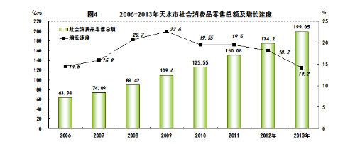 全年全市实现社会消费品零售总额199.05亿元,比上年增长14.2%。按经营地统计,城镇零售额144.43亿元,比上年增长12.5%;乡村零售额54.62亿元,增长19.1%。