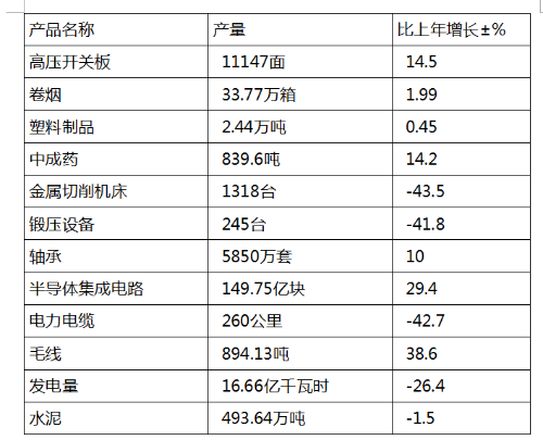 全年规模以上工业企业实现利润总额7.57亿元,比上年下降0.2%;主营业务收入175.54亿元,下降5.6%;利税总额13.98亿元,下降2.2%;销售产值309.2亿元,增长2.3%。规模以上工业企业产品产销率93.2%。规模以上工业亏损企业亏损额5.48亿元。