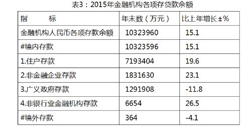 年末金融机构人民币各项存款余额1032.4亿元,比上年增长15.1%。其中境内存款1032.36亿元,增长15.1%。金融机构人民币各项贷款余额642.34亿元,比上年增长35.6%。其中住户贷款236.59亿元,增长44.1%;非金融企业及机关团体贷款405.75亿元,增长31.1%。