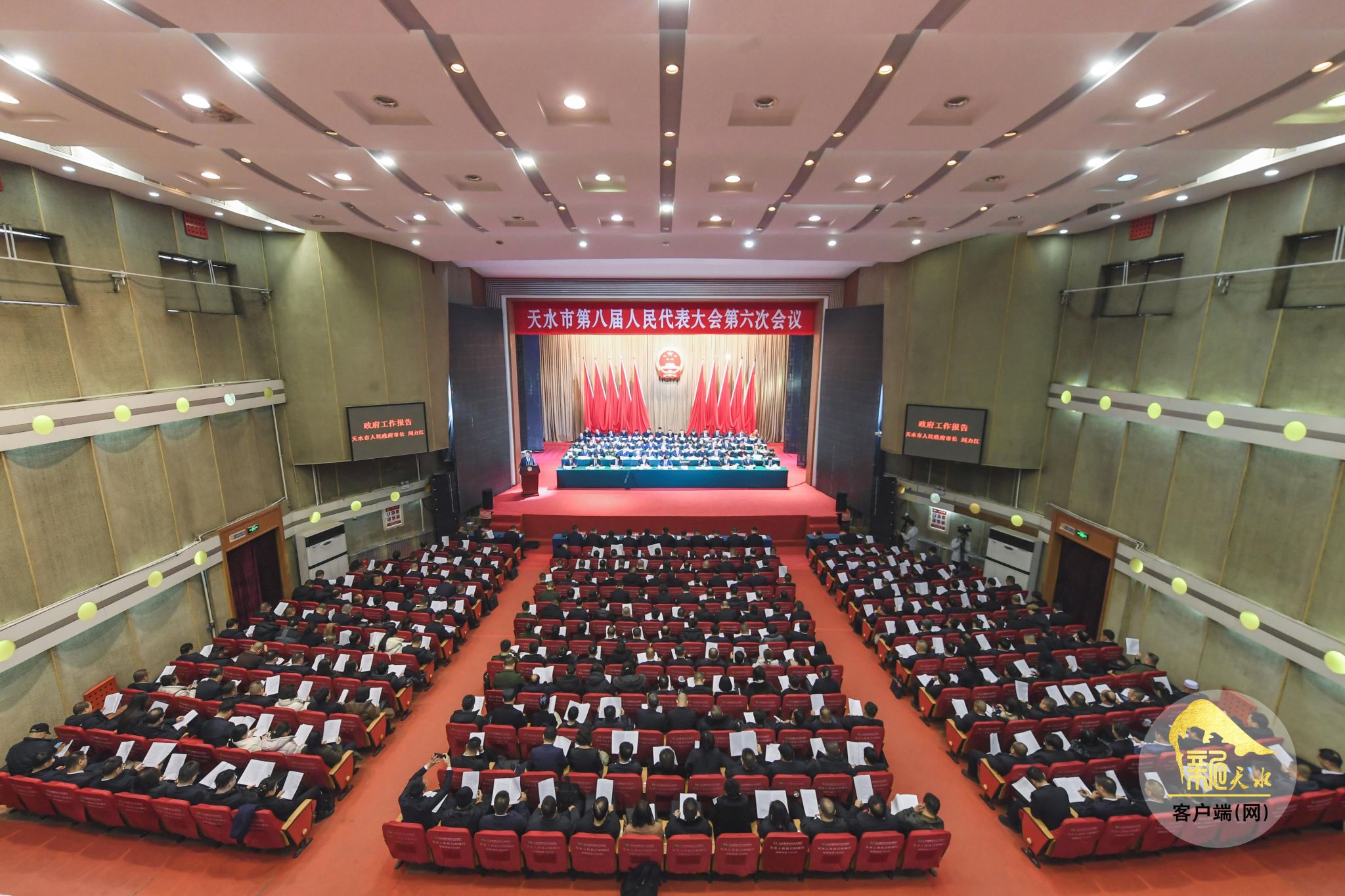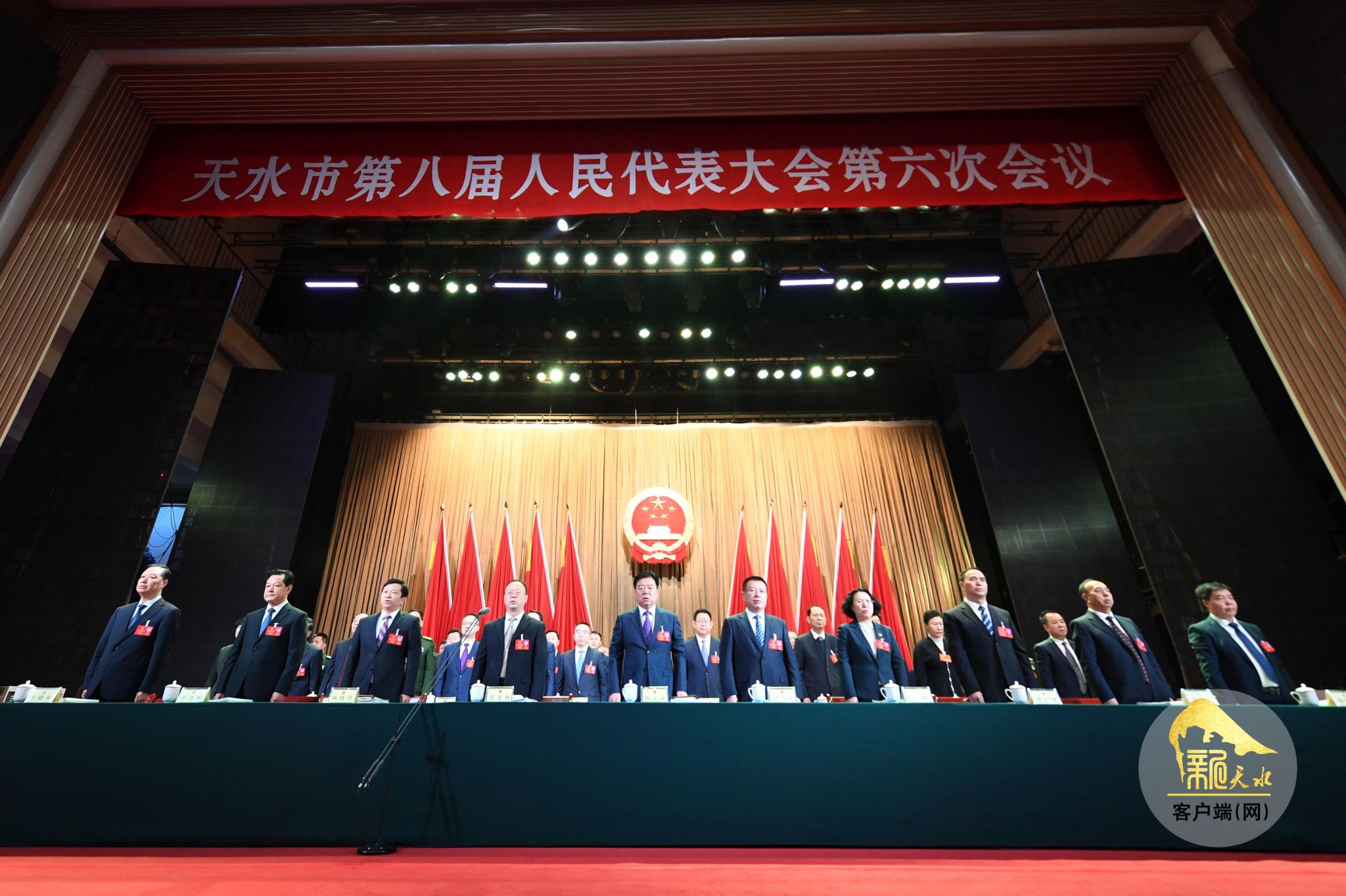 上午9时,贾义翔宣布:天水市第八届人民代表大会第六次会议开幕!全体起立,奏唱中华人民共和国国歌。