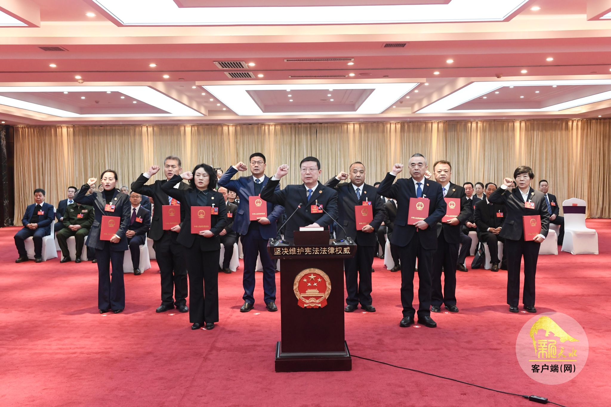 市八届人大六次会议主席团成员和列席主席团会议人员参加宪法宣誓仪式。