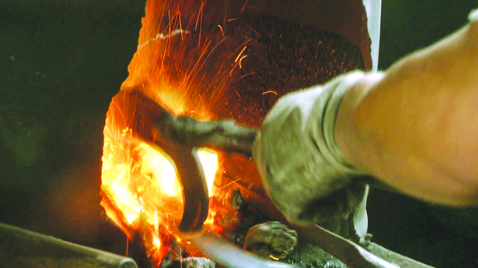 俗话说,“打铁没样,边打边像”。和锻打大件一样,小件虽产品不同、工艺无定法,但工序、流程也是选料、烧料、锻打、定型、淬火、回火、磨光等。其中,最重要的工序莫过于锻打。锻打时,要凭目测不断翻动铁料,中间稍有冷却,或变硬,还需放入火炉中煨红,然后反复锻打直至成型。
