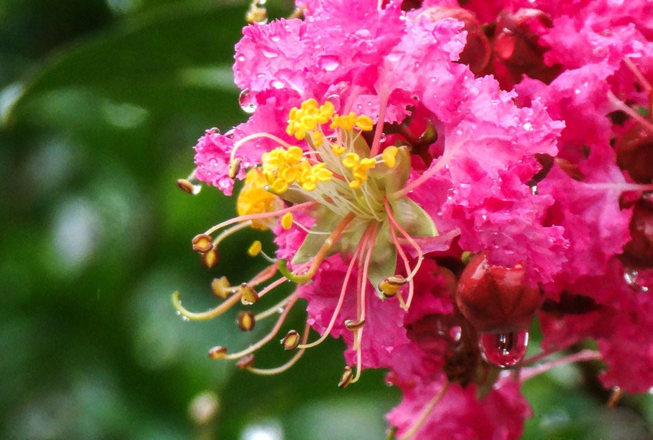 紫薇还具有药物作用,李时珍在《本草纲目》中论述,其皮、木、花有活血通经、止痛、消肿、解毒作用。种子可制农药,有驱杀害虫的功效。叶治白痢、花治产后血崩不止、小儿烂头胎毒,根治痈肿疮毒,可谓浑身是宝。(陈治平)
