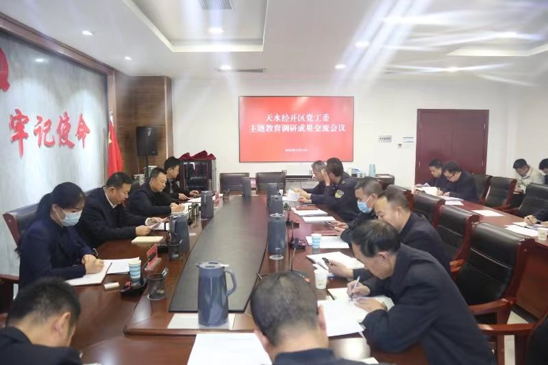 根据市委主题教育办学习贯彻习近平新时代中国特色社会主义思想主题教育安排部署,12月14日,天水经开区党工委召开主题教育调研成果交流会。党工委书记、管委会主任、主题教育领导小组组长陈海龙作交流发言并讲话。党工委班子成员参加会议,管委会各调研员及县级干部、相关职能部门负责同志列席会议。