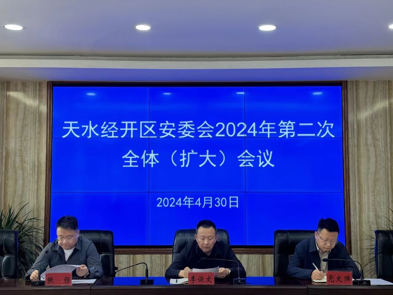 4月30日,经开区管委会副主任李俊文主持召开天水经开区安委会2024年第二次全体(扩大)会议。会议传达了市安委会2024年第二次全体(扩大)会议精神,学习了《工贸企业重大事故隐患判定标准》,并就做好“五一”长假期间及下一阶段安全生产重点工作进行安排部署。