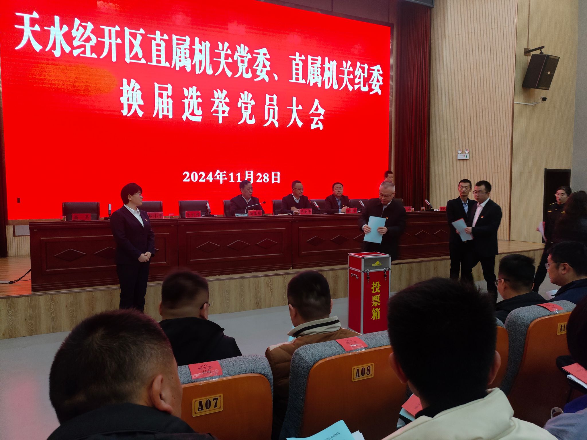 11月28日,天水经开区直属机关党委、直属机关纪委召开党员大会,选举产生新一届中共天水经济技术开发区直属机关委员会和中共天水经济技术开发区直属机关纪律检查委员会,市委直属机关工委副书记任玉璞、组织科科长缑红峰到会指导,天水经开区直属机关党委隶属各基层党组织党员代表共210人参加大会。