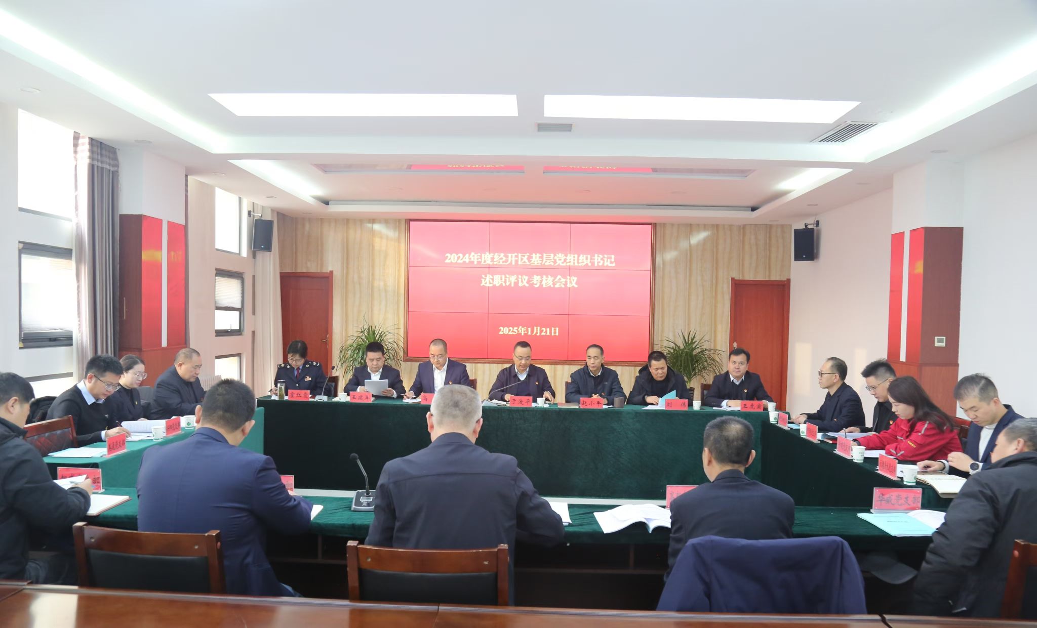 1月21日,天水经开区召开2024年度基层党组织书记述职评议大会,会议由党工委副书记、纪检监察工委书记、直属机关党委书记于爱平主持,经开区直属机关党委委员和下属17名基层党组织书记参加会议。