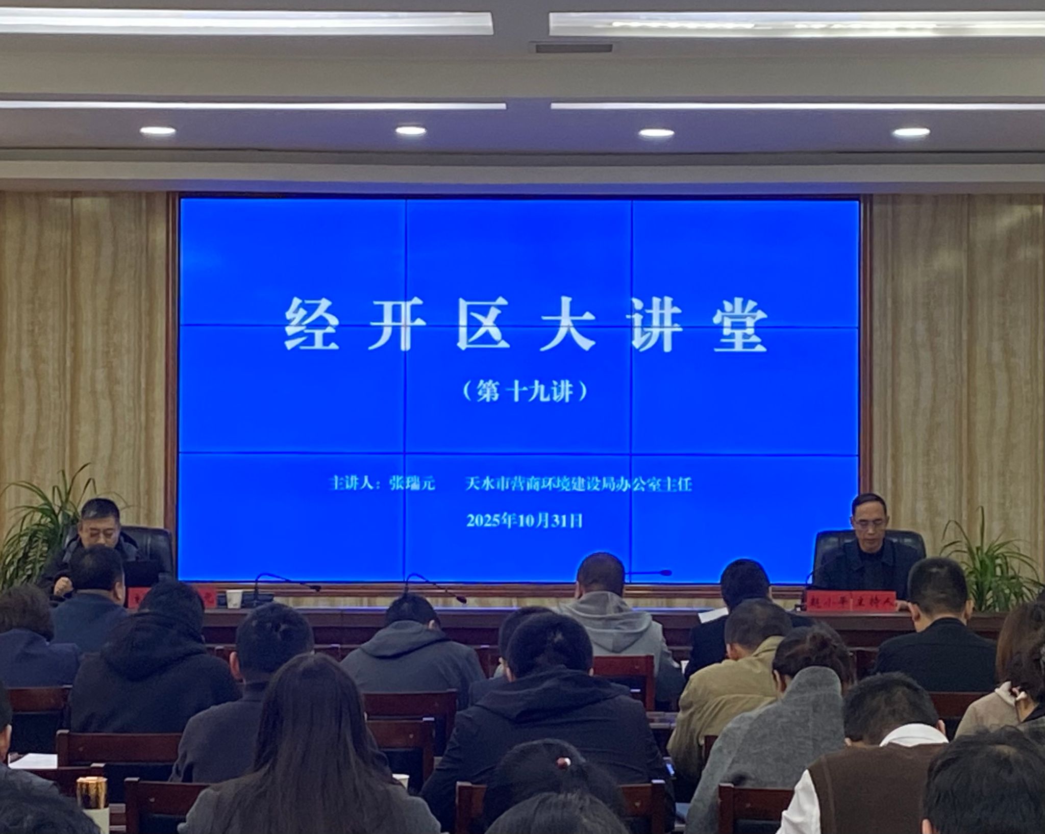 张瑞元以《创造营商新优势 集聚发展强动能》为题,从“营商环境概念界定”“营商环境发展变化趋势”“2024年全省经开区营商环境评估情况及天水市营商环境建设成效”“天水经济技术开发区评价情况”等几个方面分享了我省我市和经开区营商环境探索及实践经验,就如何持续优化营商环境,服务经济社会高质量发展,进一步提升经开区工作人员能力水平等方面进行了全面系统的讲解剖析。