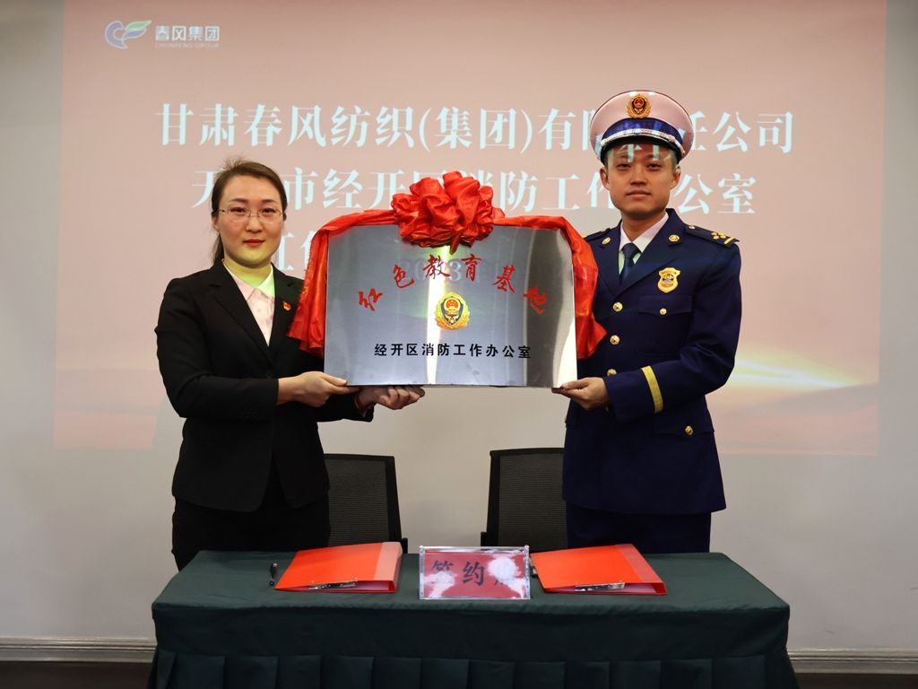 为不断创新拓宽思想政治教育方式,充分发挥驻地红色教育资源、爱国主义教育基地的重要作用,发扬红色传统,传承红色基因,融铸红色血脉。10月10日,天水经开区消防工作办公室与春风纺织集团爱国教育基地签订党建共建协议并举行“红色教育基地”挂牌仪式。