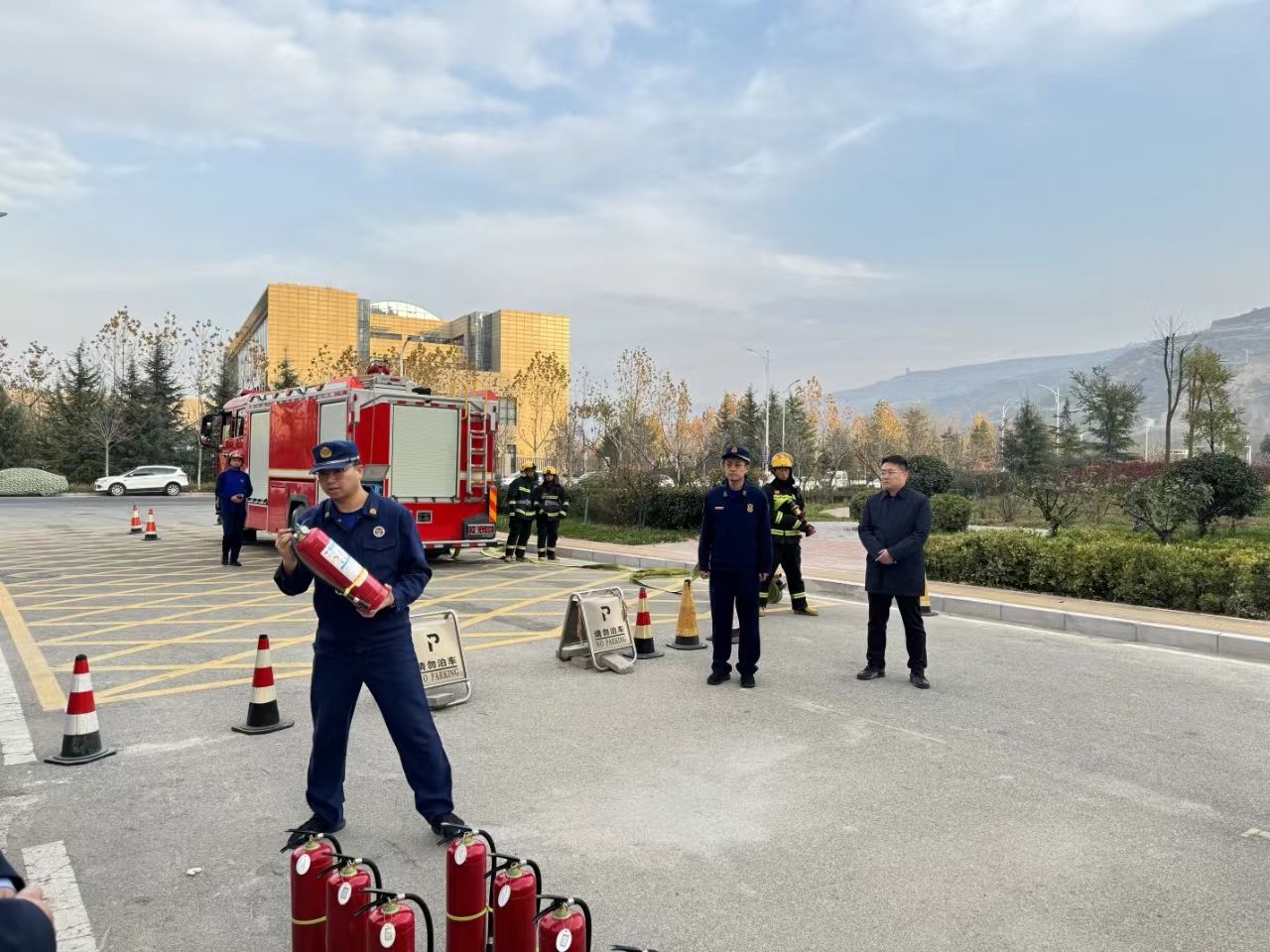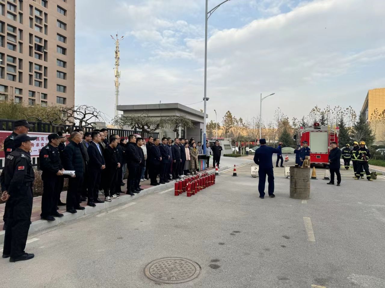 为深入贯彻落实习近平总书记对山西吕梁市永聚煤矿办公楼火灾事故重要指示、李强总理批示精神,深刻汲取近期各类生产安全事故教训,广泛宣传普及消防安全常识,切实增强全员消防安全意识。按照经开区安委会第四次全体(扩大)会议精神和经开区党工委工作安排,11月21日,经开区安委会组织应急管理分局、消防工作办公室开展消防应急演练,经开区管委会全体干部职工参加活动。