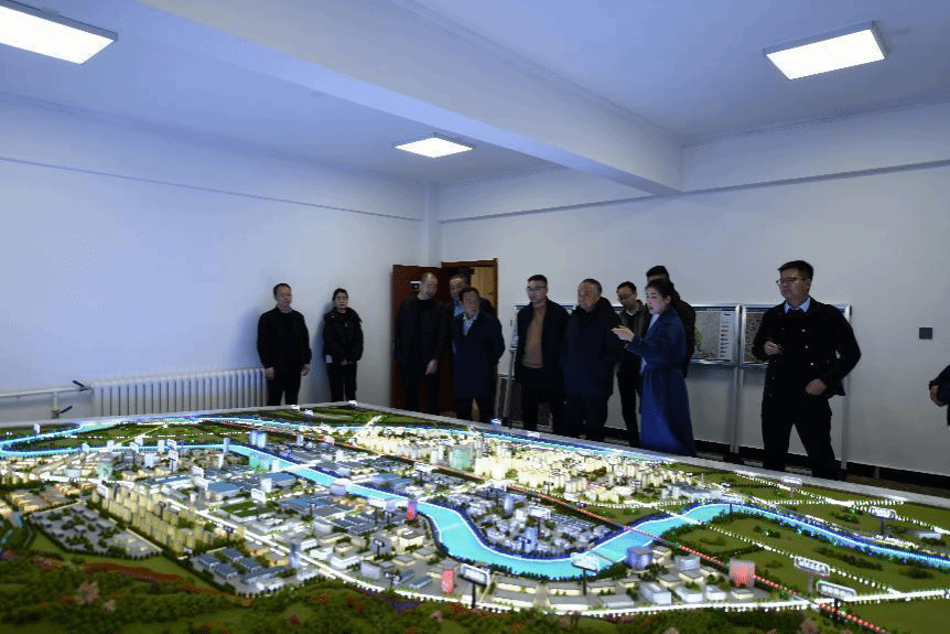 考察团一行听取了现场讲解并实地考察了各项目用地情况,通过观看沙盘、宣传视频等对三阳高新技术产业园整体规划及市政基础设施建设情况有了进一步的了解和认识。