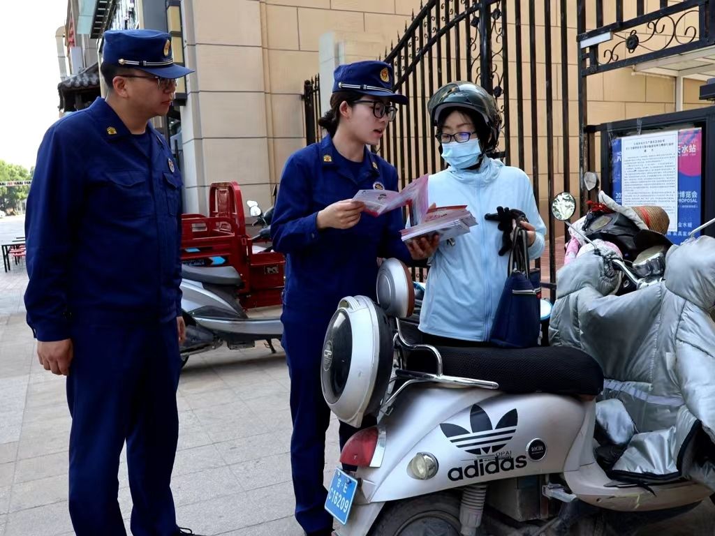 “您好,我们是消防宣传人员,提醒您电动车停放不要占用消防通道,不能入户充电,这是我们的宣传海报资料,您可以学习一下,谢谢!”。消防宣传人员向群众发放了电动自行车消防知识手册,引导居民正确购买质量合格的电动自行车、充电器和电池,并告知大家充电时要远离可燃物、充电时间不宜过长、禁止飞线充电等注意事项,从“源头”强化安全宣传。宣传人员还提醒广大居民在日常生活中要时刻注意消防安全,对安全隐患做到早发现、早处理,提醒居民不要将杂物堆放在楼道内,严禁占用、堵塞安全通道,定期检查家中电气线路,外出做好“三清三关”。此外,消防宣传人员广泛发动物业管理人员、消防志愿者在居民社区、高层住宅小区等场所的公示栏、电梯入口、门厅等醒目位置进行张贴,让广大群众出入时都可以看到温馨提示,使其在潜移默化中认识到电动自行车上楼入户、乱停乱放的危险性。