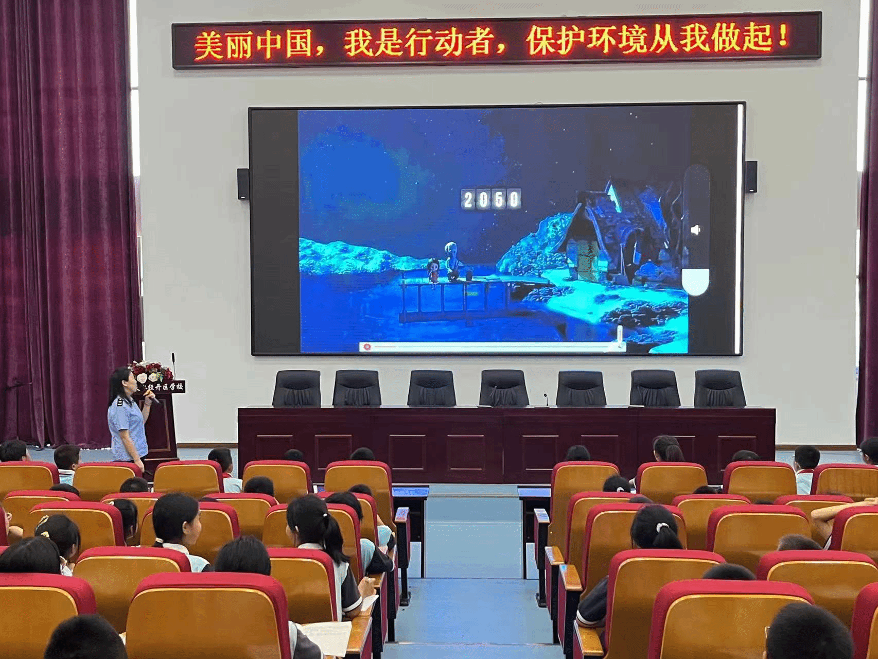 课堂上,经开区生态环境分局执法三组副组长汪亮军以“美丽中国,我是行动者,保护环境从我做起”为主题,向师生们讲解“六·五”环境日的由来。通过日常生活中的小例子,她深入浅出地介绍了节能减排、绿色出行、垃圾分类等环保领域的知识,并通过提问互动的方式,启发同学们从生活中去发现、去感受生态环境的重要性,养成简约适度、绿色低碳的生活方式,有意识地参与到绿色环保行动中来,鼓励学生们从日常生活中的点滴小事做起,积极践行绿色生活方式。