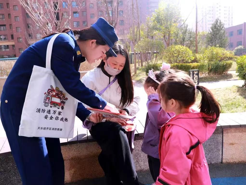 3月12日,天水经开区消防组织宣传人员走进住宅小区,开启消防宣传活动,以实际行动践行志愿服务初心,将消防安全知识送到群众身边。