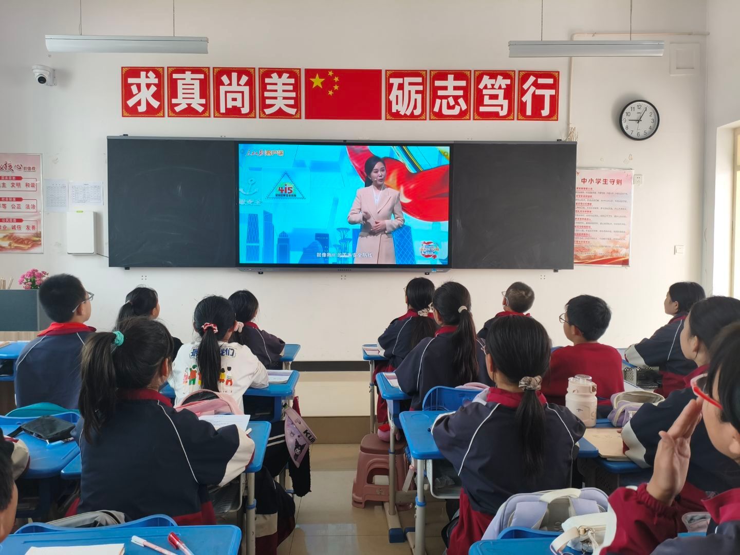 4月15日全民国家安全教育日当天,全校各班级统一组织学生收看了由教育部、中央网信办、人民日报社联合主办的“全国中小学生同上一堂总体国家安全观‘思政大课’”。本次“思政大课”以“国泰民安利发展”为主题,针对不同学段学生的认知特点,设置了“话说身边安全事”、“解码大安全理念”等课程内容,通过生动的案例和深入的讲解,帮助同学们系统学习了总体国家安全观的核心要义,理解了政治安全、军事安全、经济安全、文化安全、社会安全、科技安全、网络安全、生态安全等16个重点领域的安全内涵。同时,学校团总支以“国家安全 青春挺膺”为主题开展了4月份主题团日活动,组织全体团员师生积极参与国家安全教育主题活动。