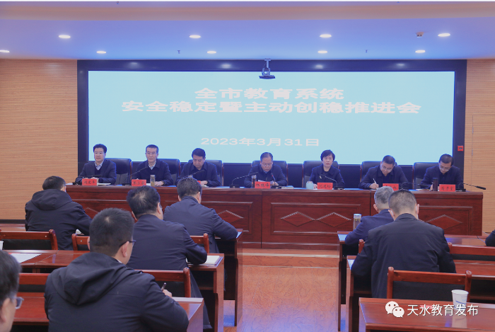 为进一步改进和加强全市学校安全管理,优化学校育人环境,保护广大师生生命财产安全,全面贯彻落实省市主动创稳推进大会精神,动员全市教育系统进一步提高政治站位,主动创稳、有效创稳,全力创稳。3月31日上午,市教育局组织召开了全市教育系统安全稳定暨主动创稳会议。市委教育工委书记、市教育局党组书记杨瑞峰主持会议并讲话。市教育局班子成员、各县区教育局主要领导和分管领导、局直各单位党政主要 负责人、市教育局机关科室负责人共70余人参加了会议 。