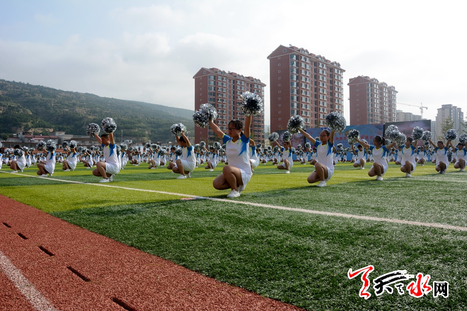 排练现场,参加天水市第五届中学生运动会开幕式团体操展演的学生们都在紧张地彩排。为了能在开幕式上向观众呈现更加完美的演出,同学们热情高涨,当出现不统一的队形或动作时,他们及时调整、反复排练,现场氛围活跃。