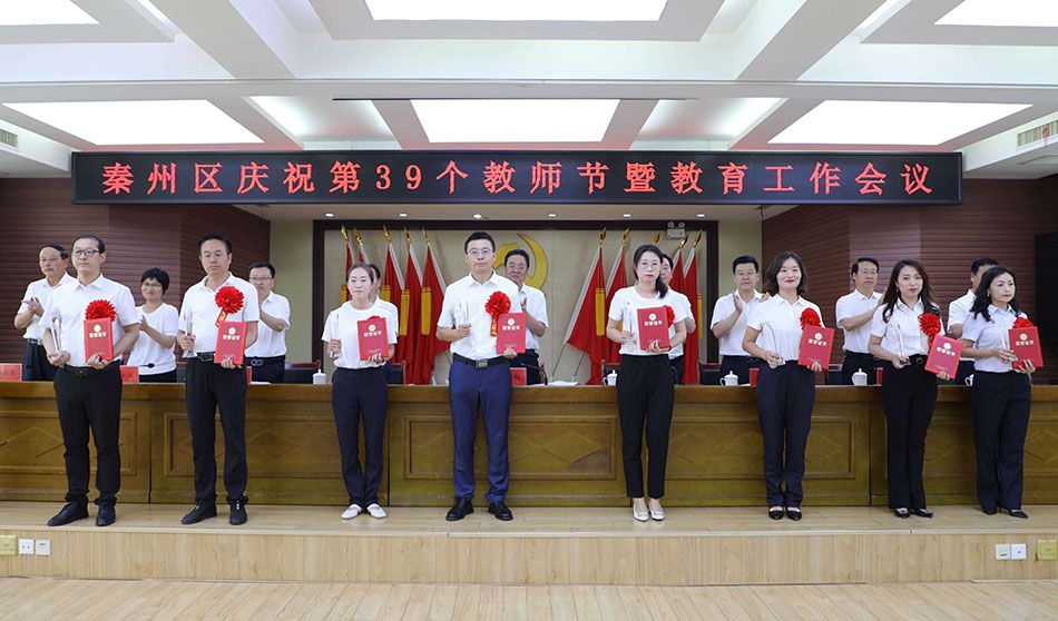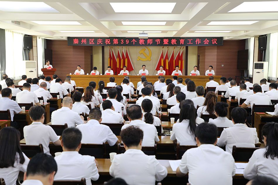 秦州区融媒体中心9月6日讯(记者 邵千 张继明)9月5日,秦州区召开庆祝第39个教师节暨教育工作会议。市委常委、区委书记王东红出席会议并讲话。他强调,全区上下要坚持以人民为中心发展教育,主动超前布局、有力应对变局、奋力开拓新局,以教育高质量发展赋能经济社会发展,努力为秦州现代化建设贡献教育力量。