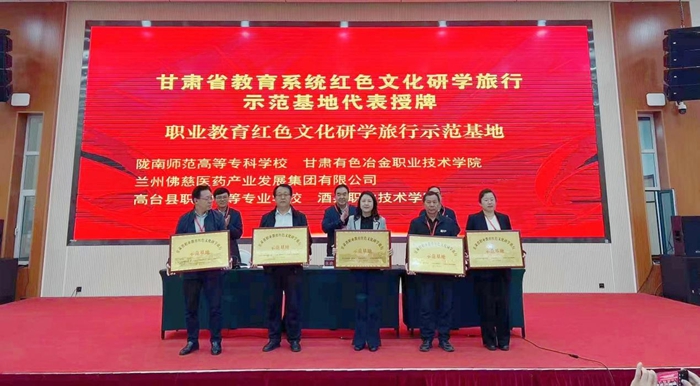 会议全面总结了近年来全省教育系统红色文化育人工作开展情况,对下一步工作进行了安排部署。会上,宣读了全省教育系统红色文化育人共同体建设方案,为教育系统红色文化育人共同体牵头单位、第二批甘肃省红色基因传承示范校、第二批甘肃省职业教育红色文化研学旅行示范基地代表授牌。天水师范学院、庆阳市教育局、会宁县教育局和中国工农红军高台董振堂红军小学等4家单位作了红色文化育人经验交流。