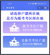4.考生填写学信网验证码(考生可访问学信网: https://my.chsi.com.cn获取学信网验证码)、选择是否在校生、选择是否当前考区所在地户籍(在校生)。