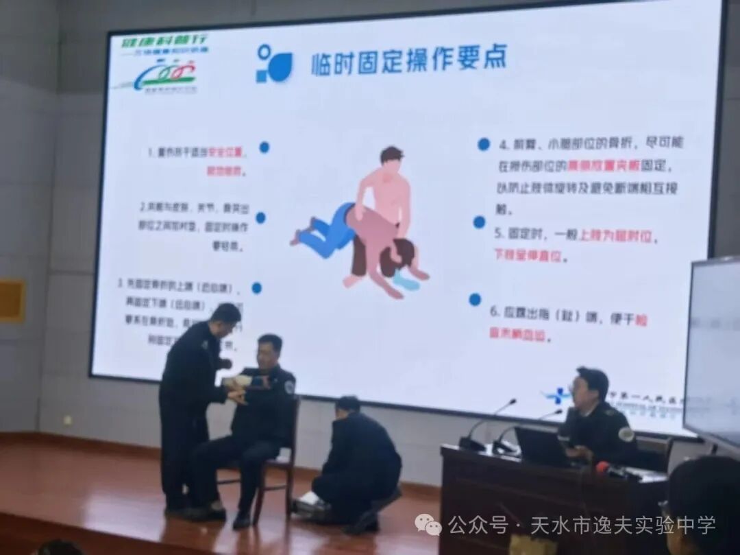 为增强师生应急救护能力,筑牢校园安全防线,4月8日下午,市逸夫实验中学联合天水市第一人民医院急诊医学科及儿童保健科专家团队,共同举办了“守护生命‘救’在身边”急救技能实践培训活动。校领导、教职工及学生代表共200余人参加。