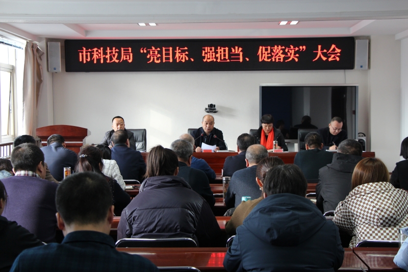 2月22日,天水市科技局召开“亮目标、强担当、促落实”大会,贯彻落实全市“亮目标、强担当、促落实”评议大会精神,机关8位各科室长和2个局属各单位负责人先后登台发言,对2022年工作目标、实现路径和保障措施进行郑重承诺。同时,对2021年工作目标任务完成情况进行述职和民主测评。局党组书记、局长高翔宇出席会议并作点评讲话。