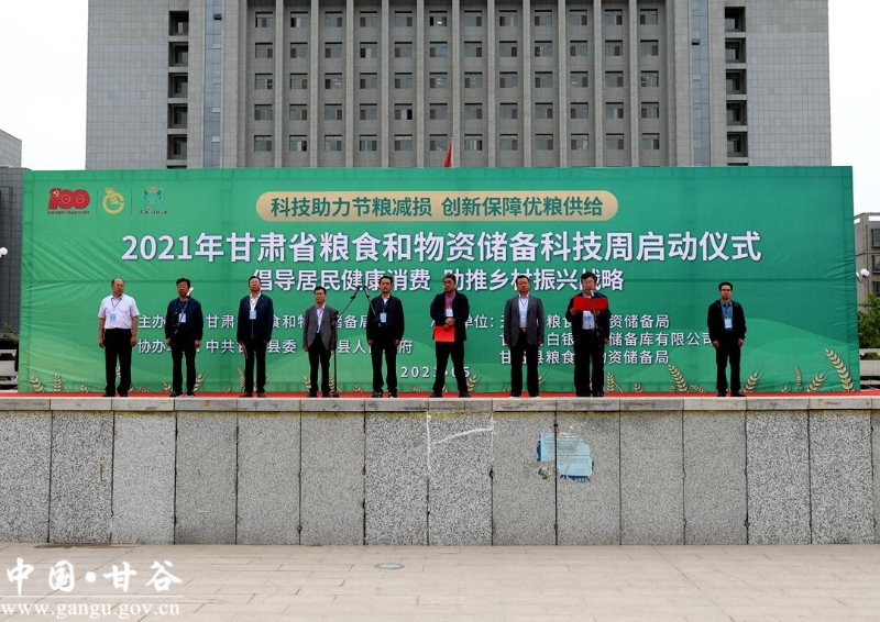 5月25日,甘肃省2021年粮食和物资储备科技活动周启动仪式在甘谷县冀城广场举行。甘肃省粮食和物资储备局白银直属库党委书记、董事长、总经理周义昌宣布活动周启动,甘肃省粮食和物资储备局白银直属库副总经理张元讲话;县委常委、副县长王明致辞。启动仪式由县人大常委会副主任陈旭主持。