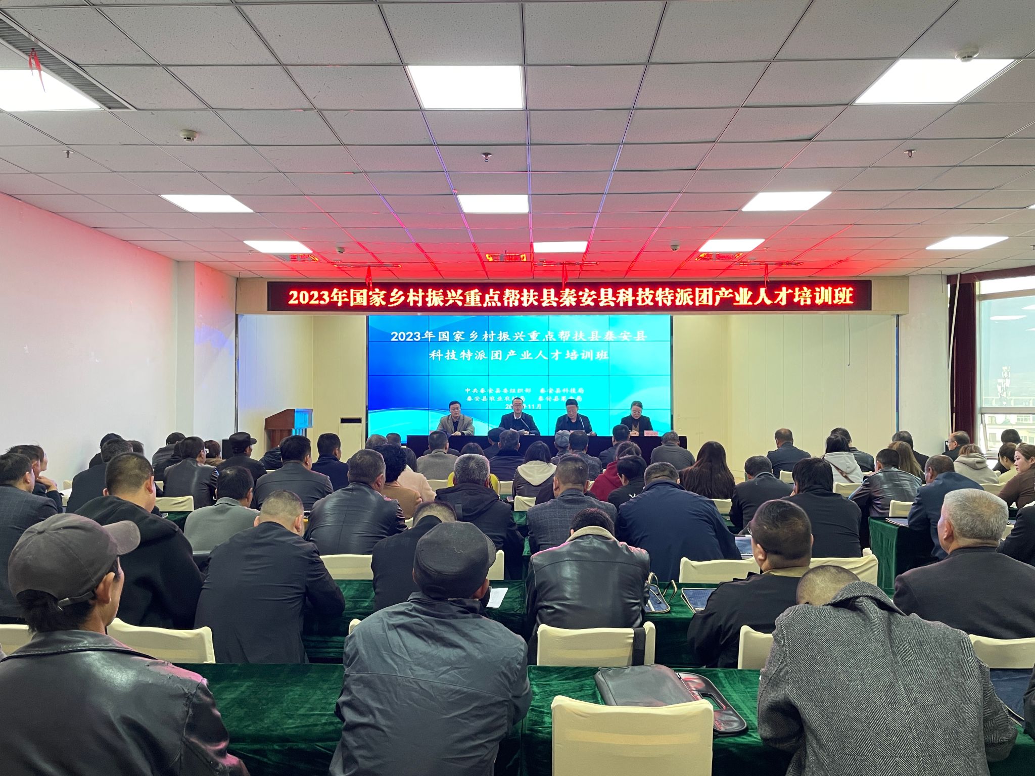 为深入学习贯彻习近平新时代中国特色社会主义思想和党的二十大精神,全面落实中组部等部委关于“组团式”帮扶工作电视电话推进会议和省委组织部调度会议精神,深入推动“组团式”帮扶工作向基层延伸,切实提升基层农村科技型人才综合素质,充分发挥科技人才在社会经济发展、农民增收致富中的示范带动作用,进一步巩固拓展脱贫攻坚成果,有效衔接乡村振兴。11月8日,2023年秦安县科技特派团产业人才培训班开班。县委组织部、县科技局、县农业农村局、县果业局等有关部门负责人,17个镇的专业技术人员、乡土人才、企业合作社负责人等100余人参加开班仪式。