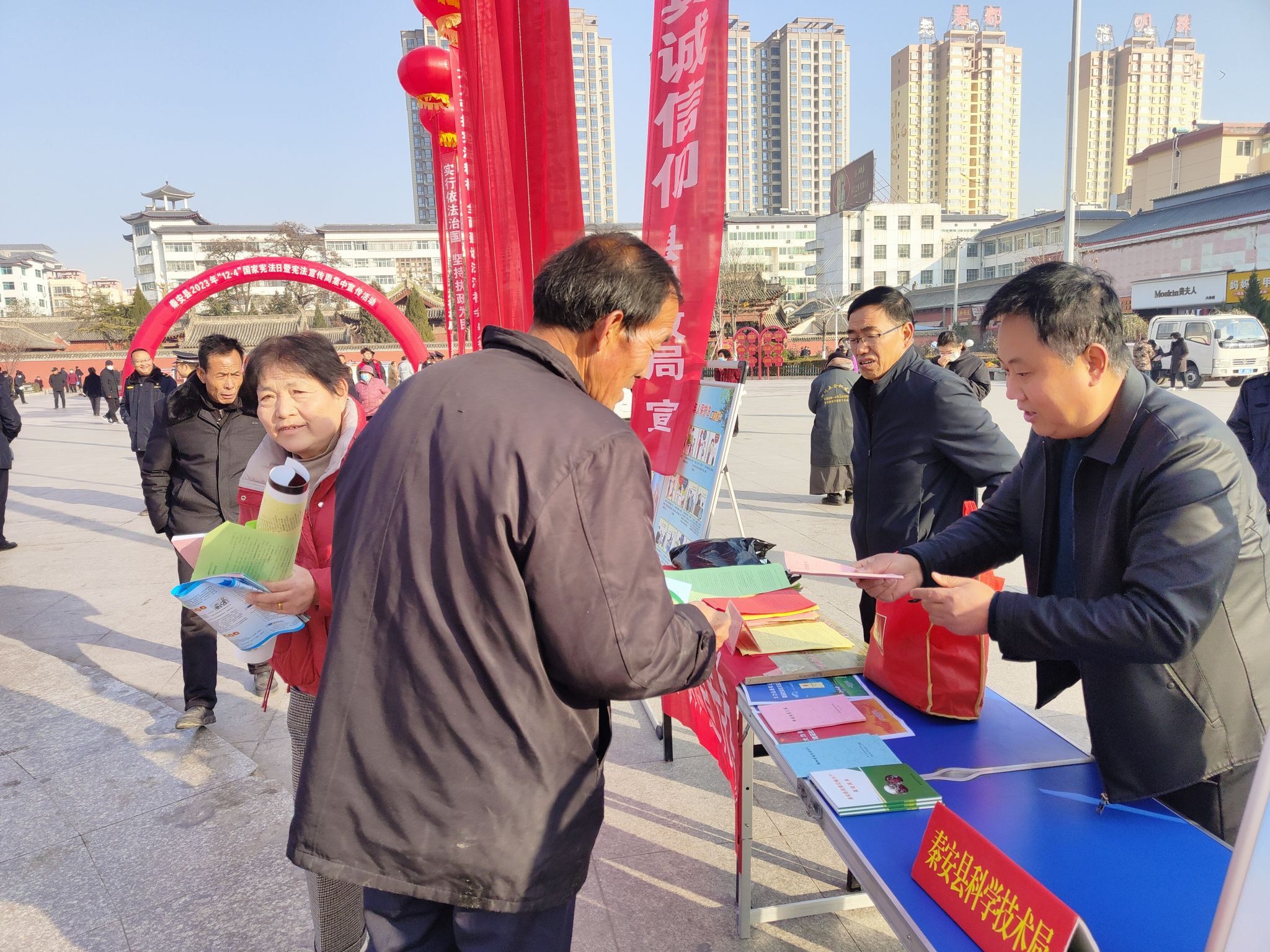 二是开展“宪法宣传周”集中宣传活动。组织单位普法志愿者参加了由县委宣传部、县依法治县办、县司法局牵头组织的宪法集中宣传活动。活动中,通过悬挂宣传标语、置放展板、现场咨询讲解、散发宪法宣传活动资料等,宣传宪法精神、宪法原则,讲解与群众生活相关的法律知识、科普知识,将科普与普法同行,营造全社会浓厚的学法、知法、懂法、守法、用法氛围。