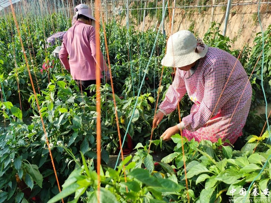 寒冬时节,走进秦安县中山镇燕娜农民专业合作社设施大棚种植基地,冬暖棚里绿意盎然,一串串红的、绿的辣椒挂满枝头,长势喜人,合作社正组织蔬菜种植能手和周边务工群众采收辣椒,采摘、转运、分拣、包装、装车工作有条不紊,一派丰收繁忙景象。