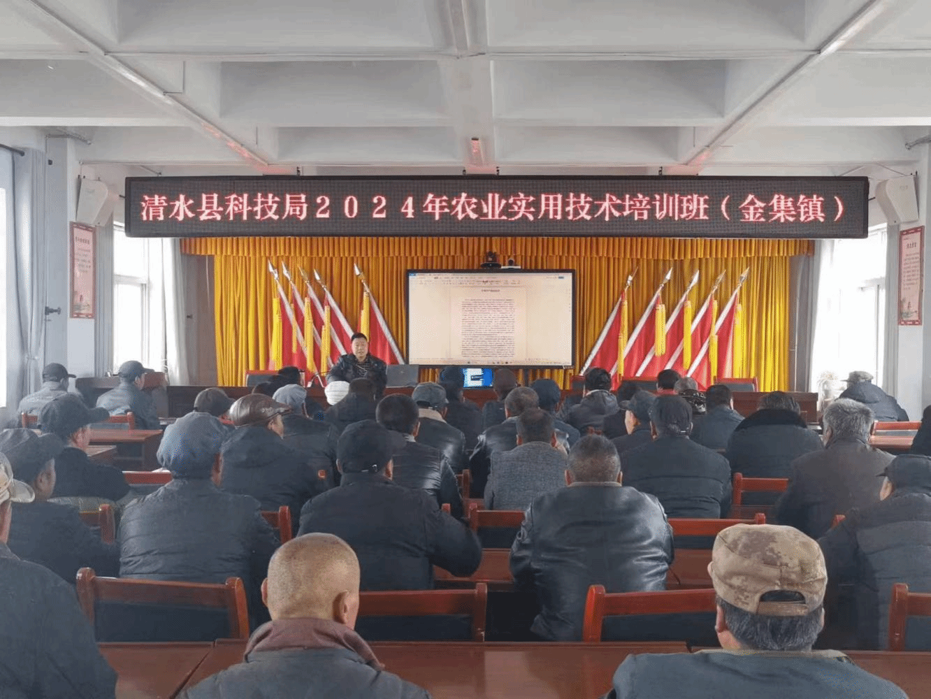 为抢抓今冬明春农闲及农村青壮年劳动力外出返乡的大好时机,进一步强化科技培训,提高广大农民群众科学种植水平,1月17日,清水县科技局积极邀请相关专家在金集、郭川、永清、秦亭等4镇相继举办了农业实用技术培训班,培训种植户300余人,发放《清水县农业实用技术读本》等培训资料300余册。