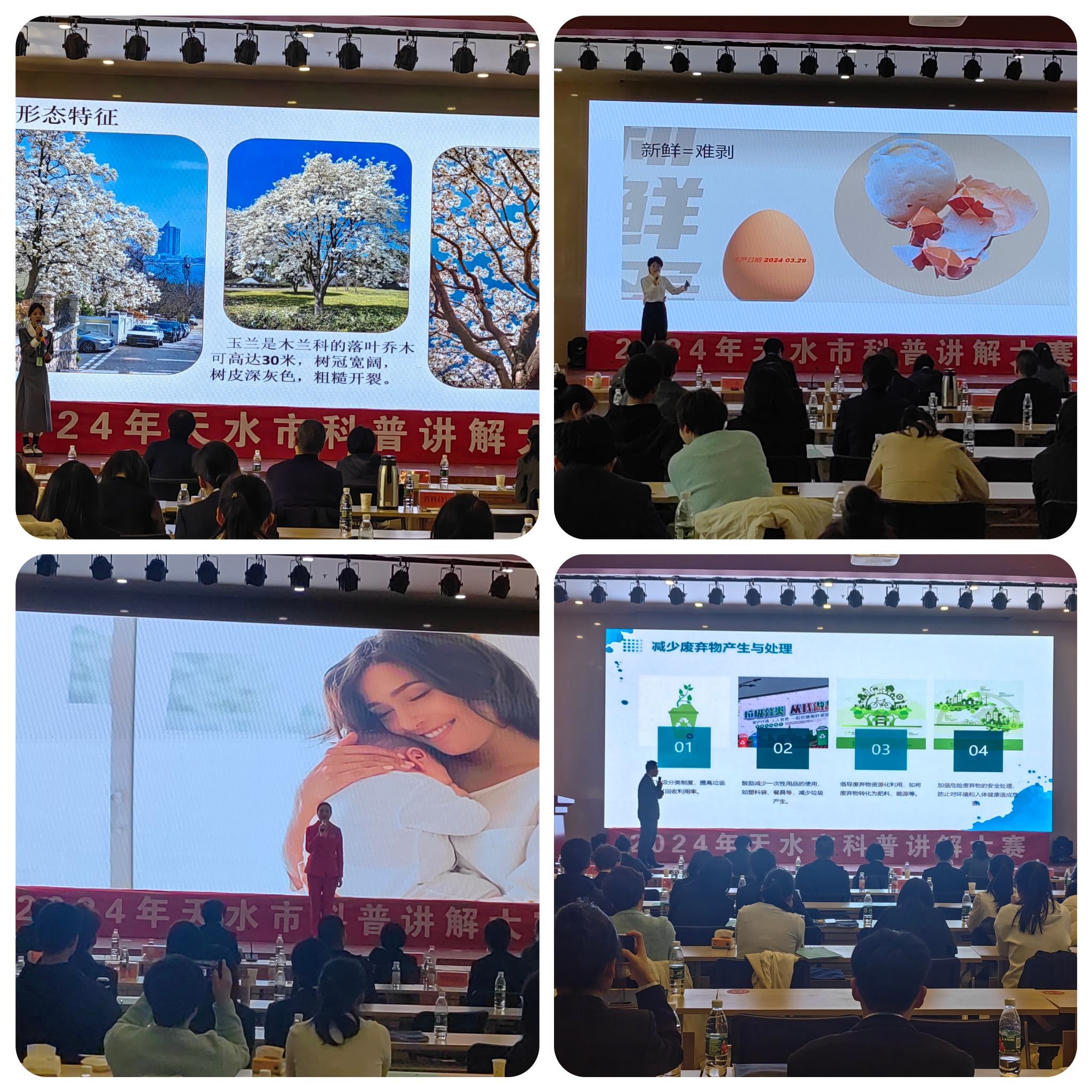 经过激烈角逐,大赛共决出一等奖2名、二等奖3名、三等奖5名、优秀奖10名,获得一、二、三等奖的10名选手同时被授予“2024年天水市十佳科普使者”称号。大赛组委会根据各单位组织参赛的综合情况,评选出“优秀组织奖”和“先进个人”若干个(名)。