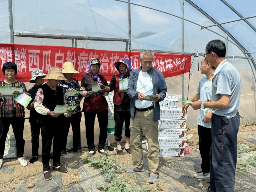 培训主要从麒麟西瓜白粉病的为害症状、发生特点、发生规律、综合防治和用药安全等几个方面进行讲解,培训内容简单、易懂、实用。通过现场讲解和发放宣传彩页等形式,使每位参加培训的学员都掌握了麒麟西瓜白粉病防治技术,取得了较好的效果。