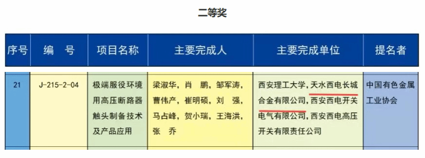 天水西电长城合金有限公司是原国家一机部投资建设的“电工合金触头生产基地”,具有完备的电工合金材料研发、制造体系。公司拥有省级科研技术中心,是中国电器工业协会“电工合金分会理事单位”,是国家标准“《铜钨及银钨触头》GB/T 8320-2017主持起草单位”,是国家级“高新技术企业”、甘肃省“战略新兴骨干企业”“专精特新企业”“科技型企业”。公司一直致力于科技创新,不断取得新成果、实现新突破。这次荣获国家科学技术进步奖二等奖,是国家对公司科研团队长期以来科技创新和产品研发的肯定。