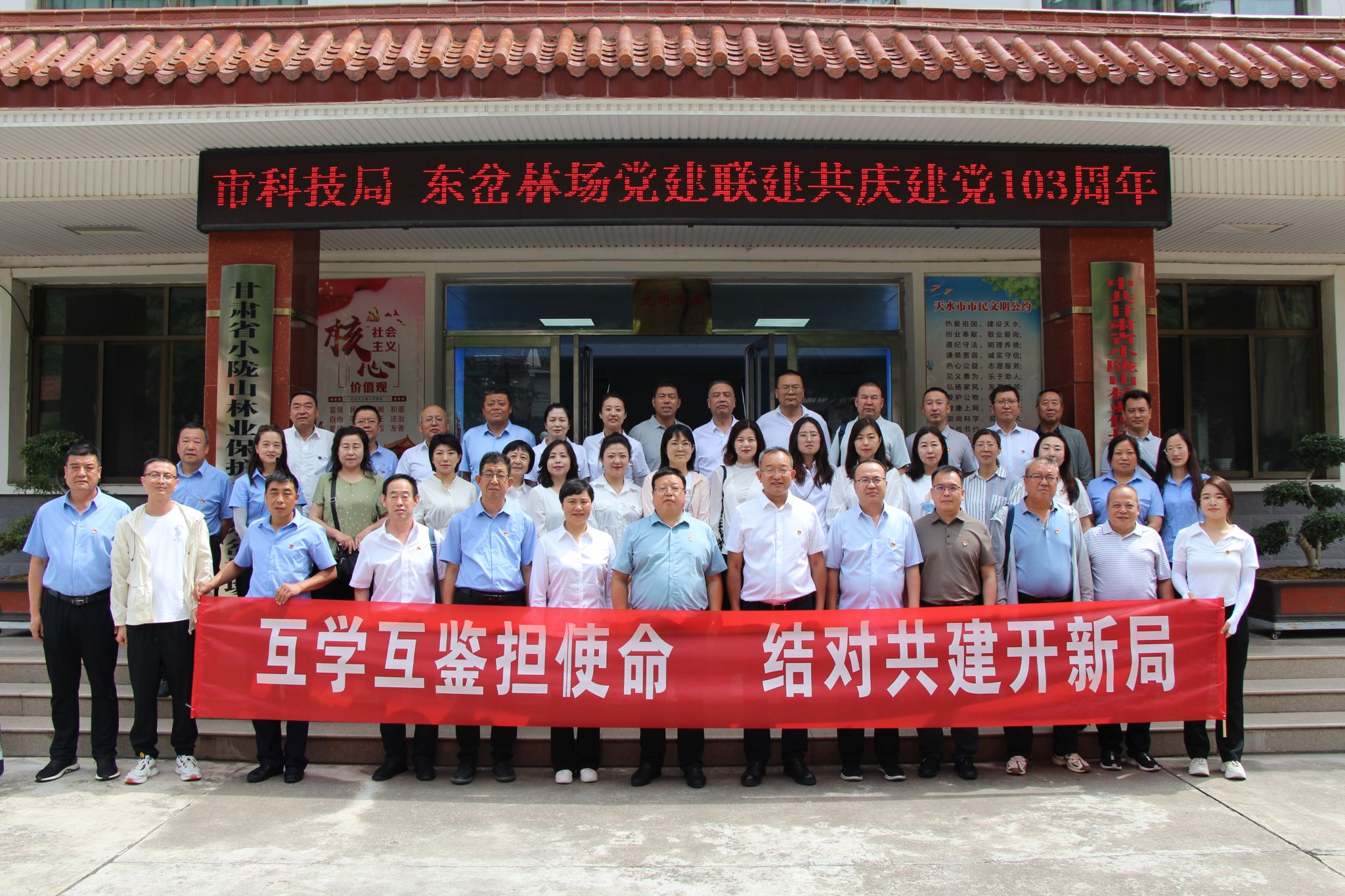 在中国共产党成立103周年来临之际,为进一步提高党建工作质量,提升基层党组织的战斗力、凝聚力,推动党建与业务工作深度融合,6月27日,天水市科技局党总支与东岔林场党支部开展结对共建活动,两个党组织60余名党员干部参加活动。
