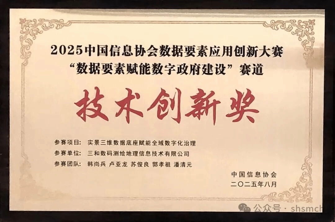 近日,2025中国信息协会数据要素应用创新大赛获奖名单公布,秦州区科技企业三和数码申报的《实景三维数据底座赋能全域数字化治理》项目,在“数据要素赋能数字政府建设”赛道中脱颖而出,荣获“促进社会高效治理”赛题“科技创新奖”。