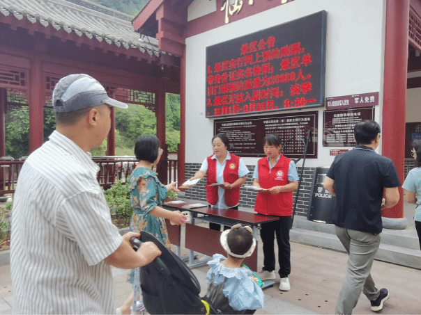 线下在麦积山大景区各子景区设立咨询服务台,开展文化遗产和旅游品牌形象宣传,工作人员通过宣传展板、宣传折页等形式,围绕“保护文化遗产 延续历史文脉”主题,集中展示了麦积山大景区文化和自然遗产保护、建设以及传承利用的丰硕成果。