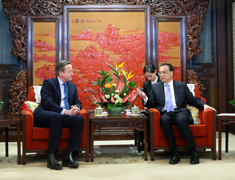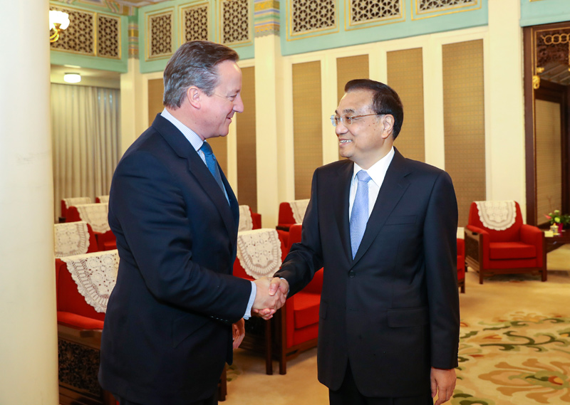 国务院总理李克强11月27日上午在中南海紫光阁会见英国前首相卡梅伦。