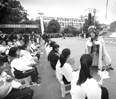 1月12日,在2019年全国文化科技卫生“三下乡”集中示范活动(广西站)中,艺术家表演川剧《双人变脸》。