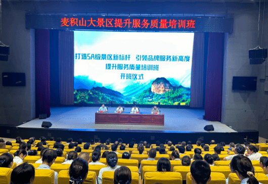 为全面提升麦积山大景区旅游服务质量,进一步提高景区从业人员的专业素养和服务技能,麦积山大景区管委会组织开展了“打造5A级景区新标杆,引领品牌服务新高度”服务质量提升培训活动。培训于8月28日正式开班,为期3天,麦积山景区管委会、麦积山文旅公司全体员工参加了培训。