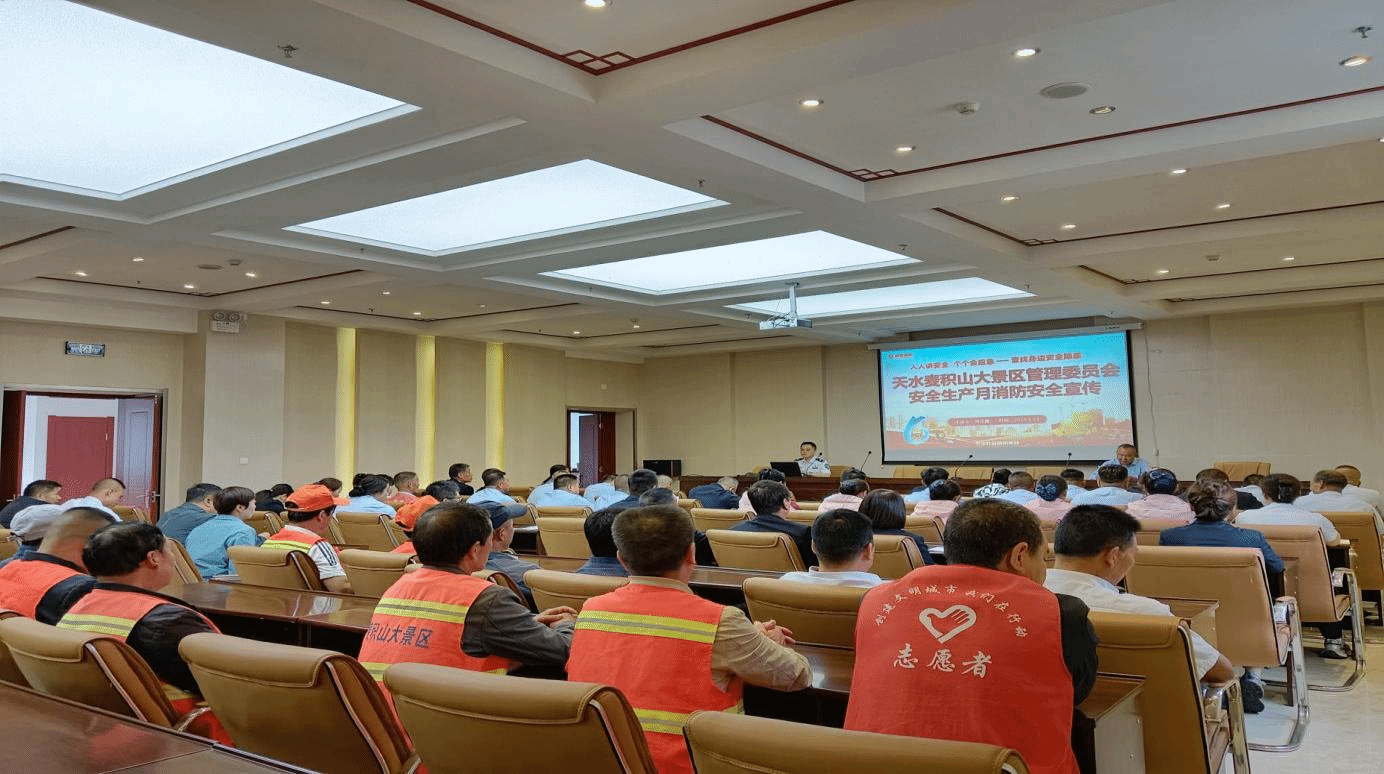 为深入贯彻“安全生产月”活动部署要求,进一步提升全员安全意识和应对突发事件的自救、互救能力,全面普及安全知识,6月18日,麦积山大景区管委会在仙人崖景区举办安全生产月安全知识培训讲座。管委会各部门、各景区服务中心、麦积山文旅公司共计100人参加培训。