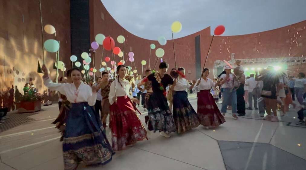 8月9日晚,随着副市长董小平在开幕仪式上致辞,市委常委、宣传部部长王文东的宣布音乐节正式开幕,武山非遗羊皮鼓民俗表演率先登场,其独特的节奏和韵律瞬间点燃了现场观众的热情,紧接着,武山捣蒜罐的表演更是将氛围推向高潮,让观众们感受到了浓厚的民俗文化气息。在星空音乐节期间,不仅有民族舞蹈《麦积飞天》和动感街舞《大风车》等各具特色的表演,还有本土知名音乐人及乐队的原创歌曲演唱和经典名曲翻唱。这些表演不仅展示了音乐的多样性和魅力,也体现了天水地区丰富的文化底蕴和艺术创造力。此外,音乐节还结合了独特的天井建筑造型,通过光影艺术的装饰,为观众营造了一个独特的户外音乐体验空间。