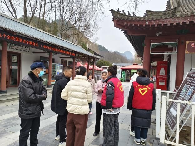 景区现场,志愿者协助景区工作人员维持现场秩序,引导游客购票,帮助残疾人士进入景区;向过往需要帮助的游客提供咨询服务,并耐心对旅客的不文明行为进行劝导,提醒游客自觉遵守景区相关规定和爱护景区环境,争当文明游客。