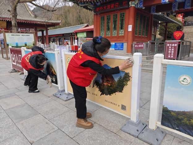麦积山景区服务中心工作人员分工合作,携带抹布、簸箕、笤帚、夹子等卫生工具对景区环境卫生进行地毯式清理,认真细致打扫,确保卫生不留死角。用实际行动呼吁游客共同维护环境卫生,营造一个整洁、温馨、舒适的旅游环境。