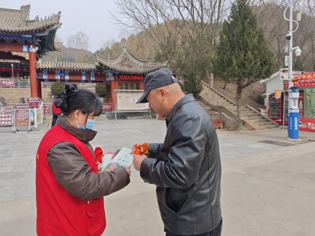 随后,景区服务中心为游客发放文明旅游宣传册,宣传文明旅游知识,倡导绿色出游、文明游玩、保护环境、摒弃陋习,营造良好的文明旅游氛围。