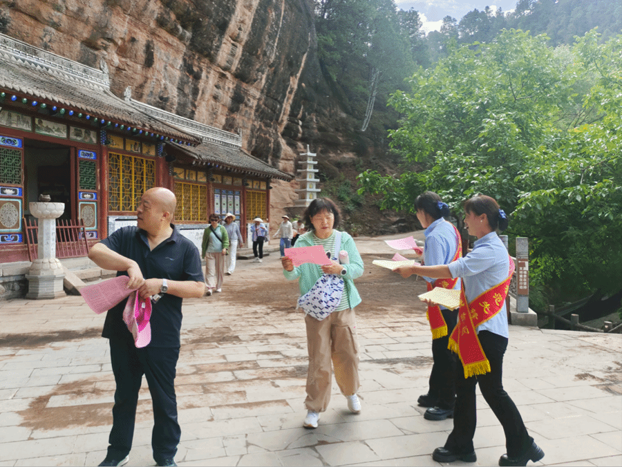 线下活动同样精彩纷呈。景区参加了2025年文化和自然遗产日甘肃主会场,捧回《2025年甘肃文物全媒体传播精品推介项目》荣誉,在麦积山、仙人崖景区设立文化遗产咨询台,通过20余块图文并茂的展板、2000余份精心设计的宣传折页,系统展示景区在石窟保护、壁画塑像修复、文化传承、旅游融合等方面的丰硕成果。游客驻足展板前,一边翻阅资料一边感叹。麦积山景区还开展了“遗产保护知识问答”活动,现场参与游客获赠麦积山石窟主题文创书签,增加了活动趣味。
