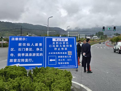 为积极应对假期客流高峰,景区提前谋划、多维发力,围绕“票务管理、交通组织、智慧引导、安全保障”四大核心环节推出系列务实举措。票务系统全面实行“分时段预约、分时段检票、分时段入园”模式,将全天游览时段科学划分为4个区间,通过预约均衡游客流量,有效避免集中扎堆。交通上实施“三级分流”。在元店路口、游客中心入口等关键交通节点设置旅游交通疏导服务站,安排专人引导游客向仙人崖、净土寺等周边特色景区分流,既缓解核心景区承载压力,又丰富游客游览选择。
