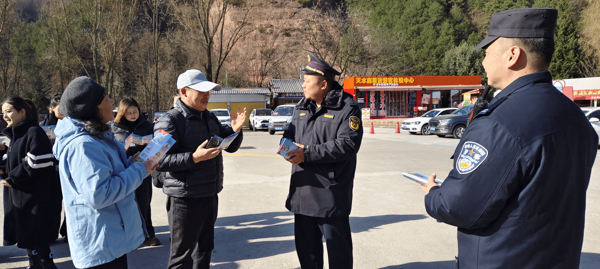 这次活动围绕“学习宣传贯彻习近平法治思想,推动宪法深入人心”的全国统一主题,把普法阵地搬到了景区检票口、观光车乘车点、农家乐集聚区等人员密集区域,通过悬挂主题横幅、发放定制宣传手册等传统形式,重点解读《宪法》《民法典》《国家安全法》等核心法律法规,结合《风景名胜区条例》《甘肃省麦积山风景名胜区条例》及景区实际案例,向游客朋友们讲解违法违规行为的法律后果。